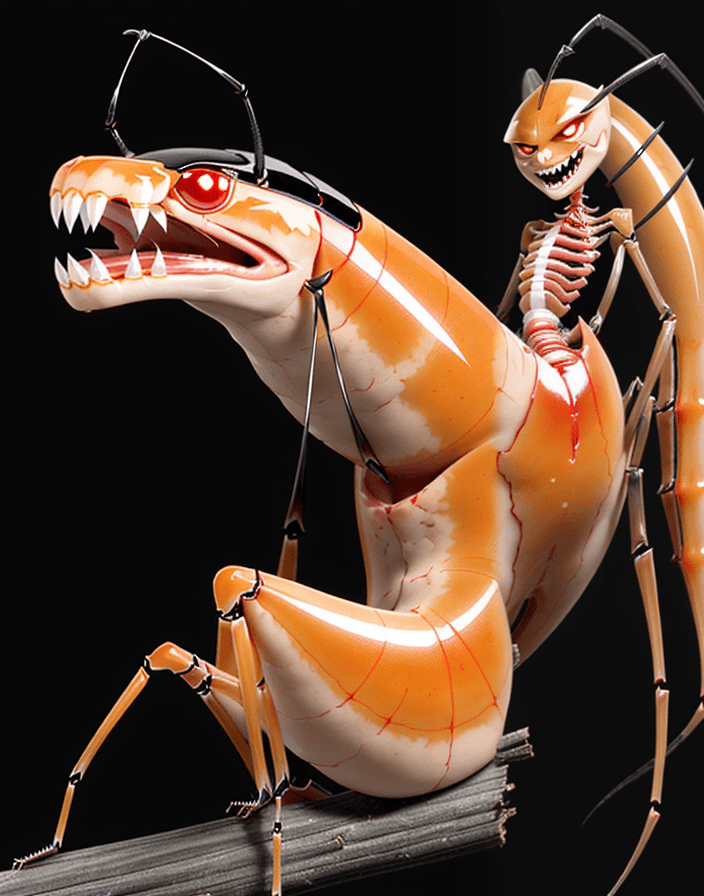 So the end result of these extensions was in need of some deletion (namely that skeleton demon thing riding Flonk’s back) but the basic shape was there. Now it was simply a matter of fixing the weird butt legs and his illogical antennae. Stable Diffusion really seems to like butt legs; even if your species of arthropod doesn’t have a butt, legs do belong under your butt. Or on it. Or through it. Meh.